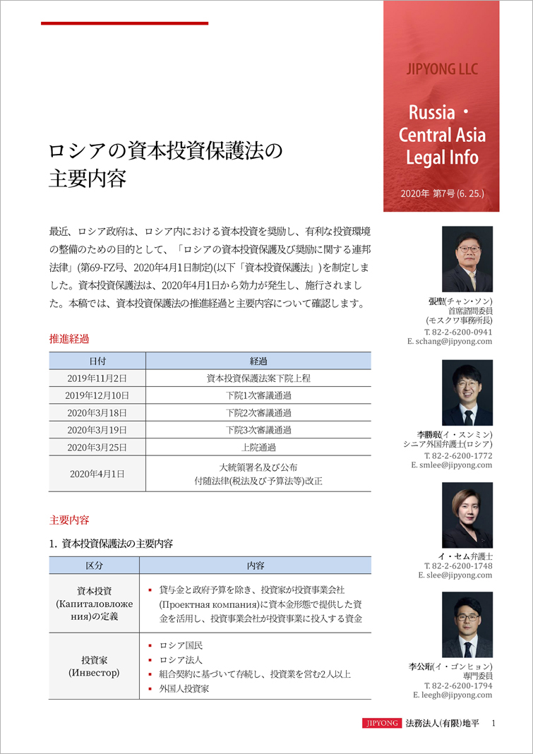 [ Legal Info] ロシアの資本投資保護法の主要内容