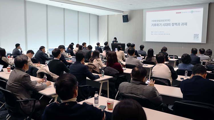 마지막으로 서울대학교 환경에너지법정책센터 지현영 변호사가 ‘ESG 규제 최근의 동향과 기업의 기후책임’을 주제로 아시아 주요국의 지속가능성 공시 제도와 국내 정책 동향을 비교하며, 국제 정합성에 부합하는 기업의 대응 방향을 제시했습니다. 지 변호사는 “글로벌 규제 환경 변화에 대응하기 위해서는 ESG 공시 체계와 기후데이터 관리 역량을 선제적으로 확보해야 한다.”라고 강조했습니다.